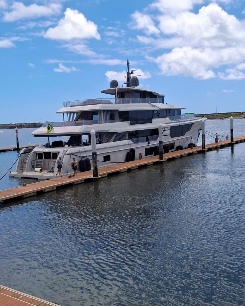 O superiate HYGGE, de 42 metros, está de volta à Recife Marina — prova de que o Recife se consolida como ponto estratégico das grandes rotas náuticas internacionais.
